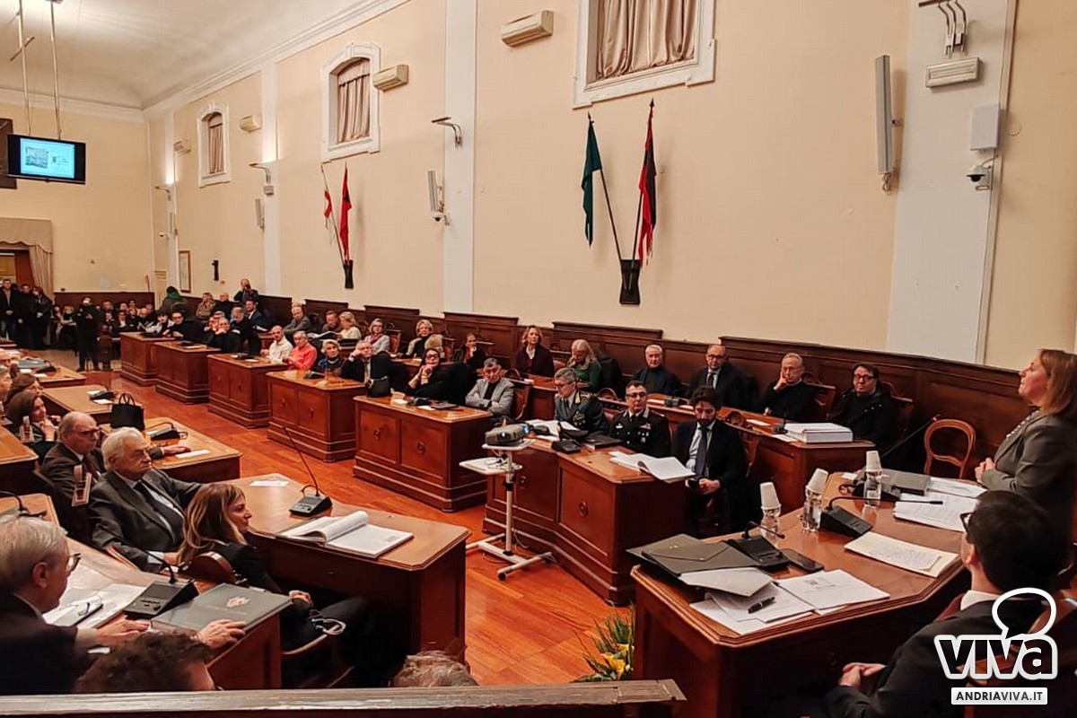 Una sala consiliare gremita ha preso parte alla cerimonia del riconoscimento "Eccellenze Andriesi 2025" al Cavaliere del Lavoro Onofrio Spagnoletti Zeuli. E' stata la Sindaca Giovanna Bruno a consegnare questo premio ad un protagonista indiscusso dell'imprenditoria agricola locale, nazionale e internazionale. Con la sua passione e determinazione, da oltre un sessantennio, si è impegnato nelle grandi questioni che hanno riguardato il settore primario, produttore egli stesso di eccellenze enogastronomiche.